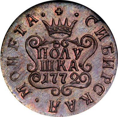 Polushka (1/4 kopek) 1772 КМ "Moneda siberiana". Reacuñación (Rusia, Catalina II)