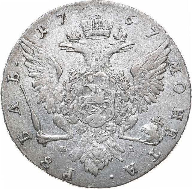 1 rublo 1767 ММД EI "Tipo Moscú, sin bufanda". Acuñación cruda (Rusia, Catalina II)