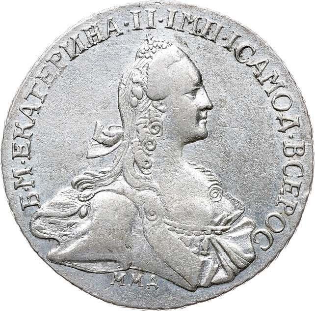 ¿Cuánto vale la moneda de platade de Catalina II de 1 rublo del 1767. ММД. EI. "Tipo Moscú, sin bufanda"?