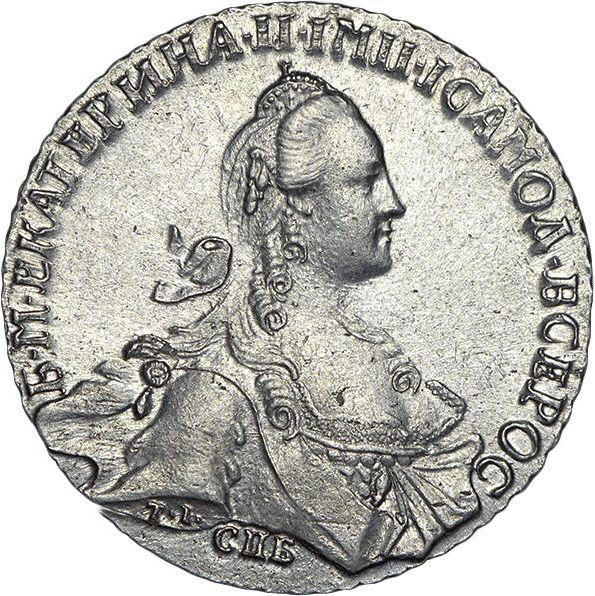 1 rublo 1767 СПБ АШ T.I. "Tipo San Petersburgo, sin bufanda". Acuñación cruda (Rusia, Catalina II)
