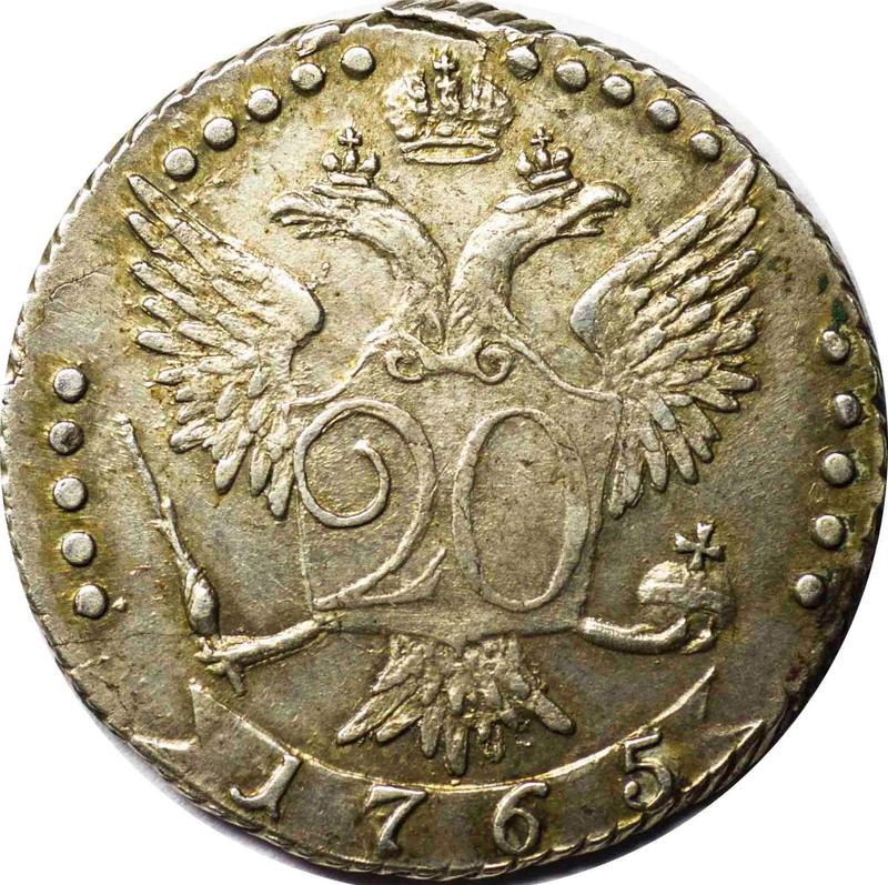 20 kopeks 1765 СПБ T.I. "Con bufanda" (Rusia, Catalina II)