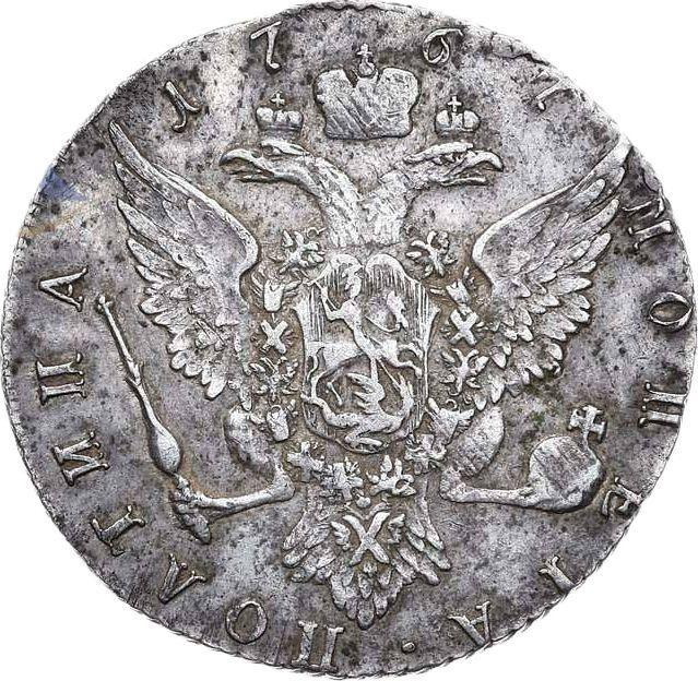Poltina (1/2 rublo) 1767 СПБ T.I. "Sin bufanda". Sin marca del acuñador (Rusia, Catalina II)