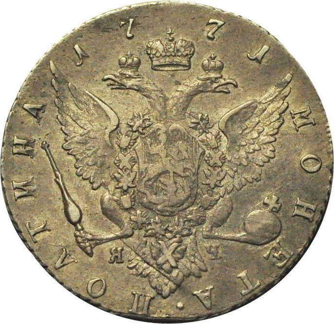 Poltina (1/2 rublo) 1771 СПБ ЯЧ T.I. "Sin bufanda" (Rusia, Catalina II)
