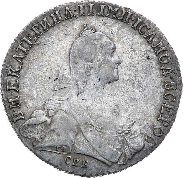 Descubra el valor actual de la moneda rusa de Poltina (1/2 rublo) de 1772 "Sin bufanda" con marca de ceca СПБ АШ T.I.. Esta moneda de plata pertenece al tiempo de Catalina II y fue acuñada en la ceca de San Petersburgo. ¿Cuál es el precio de una moneda como esta? El precio récord pertenece al lote 55 vendido en la subasta RND por RUB 975000. La subasta tuvo lugar el 27 de septiembre de 2015.