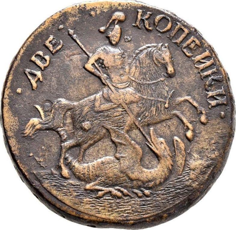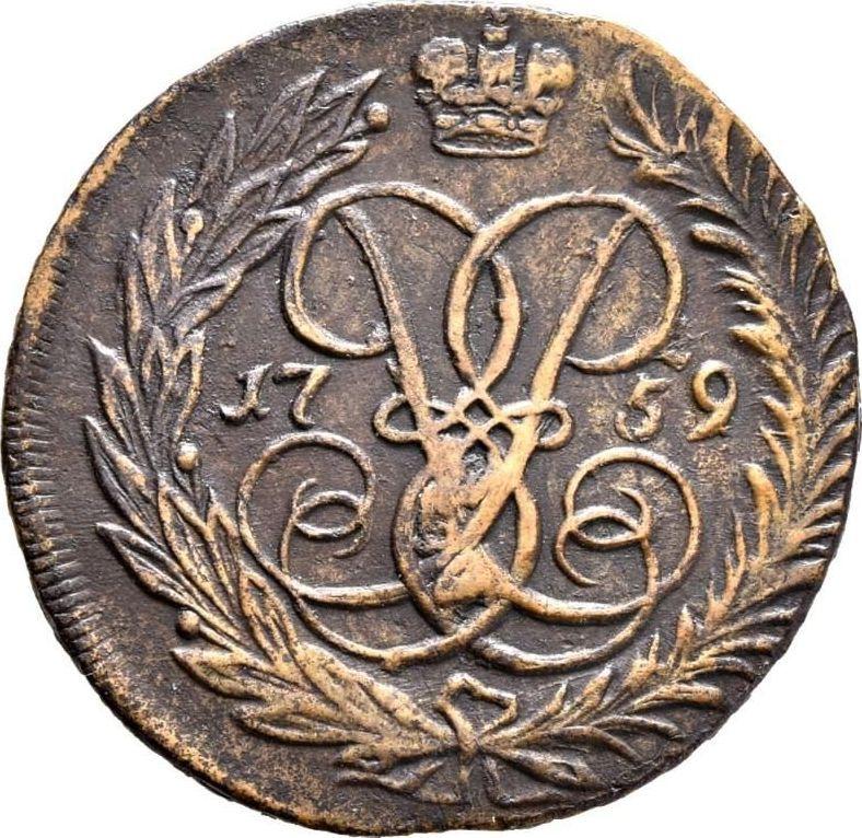 Descubra el valor actual de la moneda rusa de 2 kopeks de 1759 "Valor nominal encima del San Jorge". Leyenda del canto. Esta moneda de cobre pertenece al tiempo de Isabel I y fue acuñada en la ceca de Ekaterimburgo. ¿Cuál es el precio de una moneda como esta? El precio récord pertenece al lote 323 vendido en la subasta Alexander por USD 2000. La subasta tuvo lugar el 24 de enero de 2009.