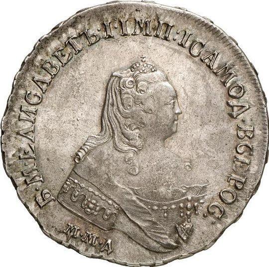 1 rublo 1754 ММД IП "Tipo Moscú". Cinta de la orden es estrecha (Rusia, Isabel I)