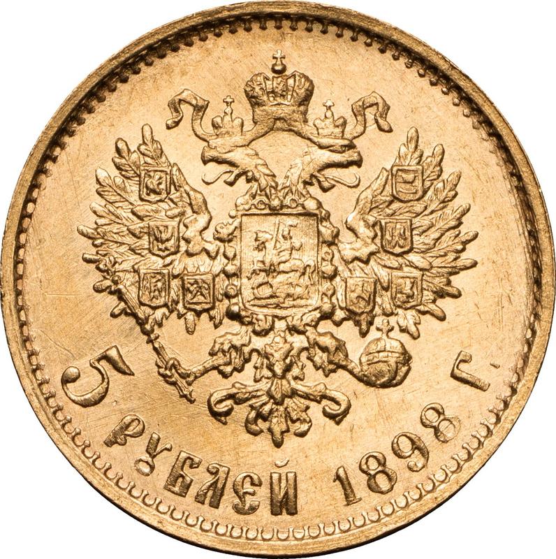 Descubra el valor actual de la moneda rusa de 5 rublos de 1898 con marca de ceca (АГ). Esta moneda de oro pertenece al tiempo de Nicolás II y fue acuñada en la ceca de San Petersburgo. ¿Cuál es el precio de una moneda como esta? El precio récord pertenece al lote 379 vendido en la subasta Alexander por USD 11000. La subasta tuvo lugar el 15 de diciembre de 2013.