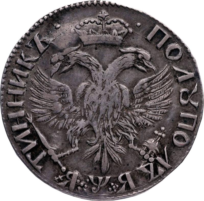 Descubra el valor actual de la moneda rusa de Polupoltinnik (1/4 rublo) de ҂АΨА (1701) "Retrato con hombreras". Esta moneda de plata pertenece al tiempo de Pedro I