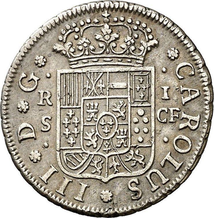 Descubra el valor actual de la moneda española de 1 real de 1770 con marca de ceca S CF. Esta moneda de plata pertenece al tiempo de Carlos III y fue acuñada en la ceca de Sevilla. ¿Cuál es el precio de una moneda como esta? El precio récord pertenece al lote 452 vendido en la subasta Aureo & Calicó, S.L. por EUR 180. La subasta tuvo lugar el 28 de mayo de 2013.