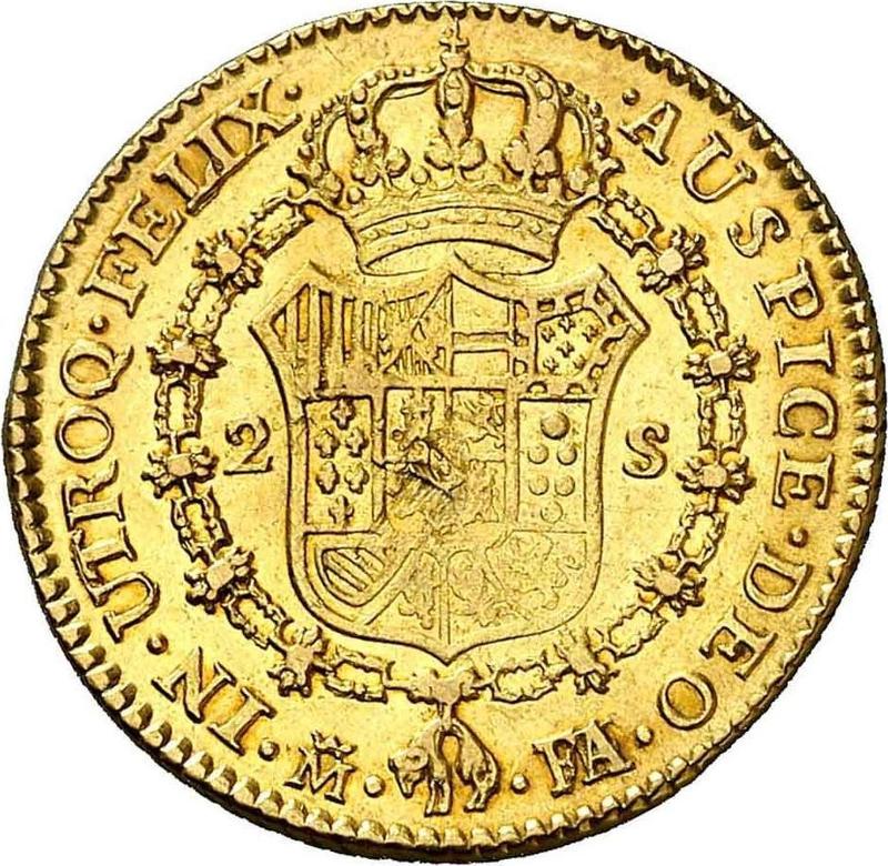 Descubra el valor actual de la moneda española de 2 escudos de 1803 con marca de ceca M FA. Esta moneda de oro pertenece al tiempo de Carlos IV y fue acuñada en la ceca de Madrid. ¿Cuál es el precio de una moneda como esta? El precio récord pertenece al lote 1193 vendido en la subasta Daniel Frank Sedwick, LLC por USD 2000. La subasta tuvo lugar el 17 de noviembre de 2020.
