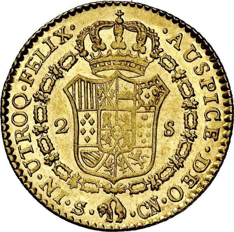 Descubra el valor actual de la moneda española de 2 escudos de 1800 con marca de ceca S CN. Esta moneda de oro pertenece al tiempo de Carlos IV y fue acuñada en la ceca de Sevilla. ¿Cuál es el precio de una moneda como esta? El precio récord pertenece al lote 780 vendido en la subasta Aureo & Calicó, S.L. por EUR 600. La subasta tuvo lugar el 26 de abril de 2012.
