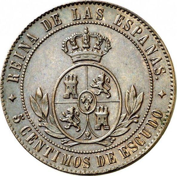 5 Céntimos de escudo 1866. Estrella de cuatro puntas. Sin "OM" (España, Isabel II)