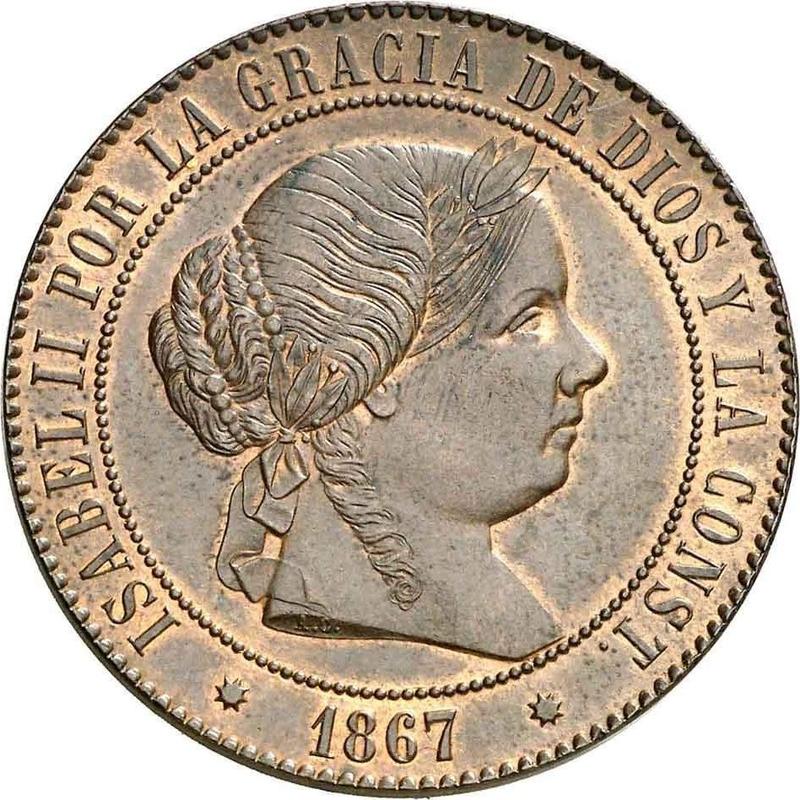 5 Céntimos de escudo 1867 OM. Estrellas de ocho puntas (España, Isabel II)