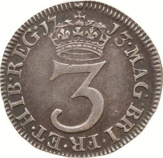 Descubra el valor actual de la moneda británica de 3 peniques de 1713 . Esta moneda de plata pertenece al tiempo de Ana. ¿Cuál es el precio de una moneda como esta? El precio récord pertenece al lote 2223 vendido en la subasta Downies por AUD 350. La subasta tuvo lugar el 15 de marzo de 2017.