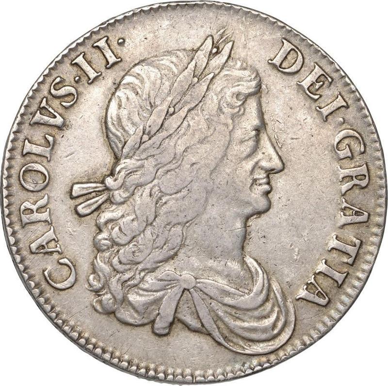 1 Corona 1662 "Primer busto laureado". Sin rosa debajo del retrato (Gran Bretaña, Carlos II)