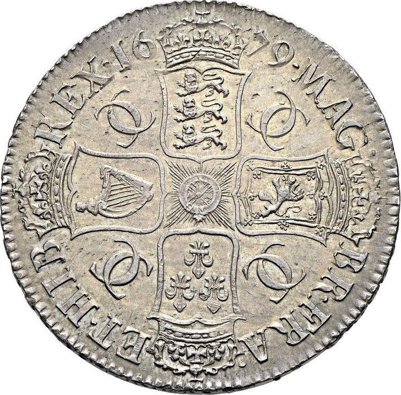 1 Corona 1679 "Cuarto busto laureado" (Gran Bretaña, Carlos II)