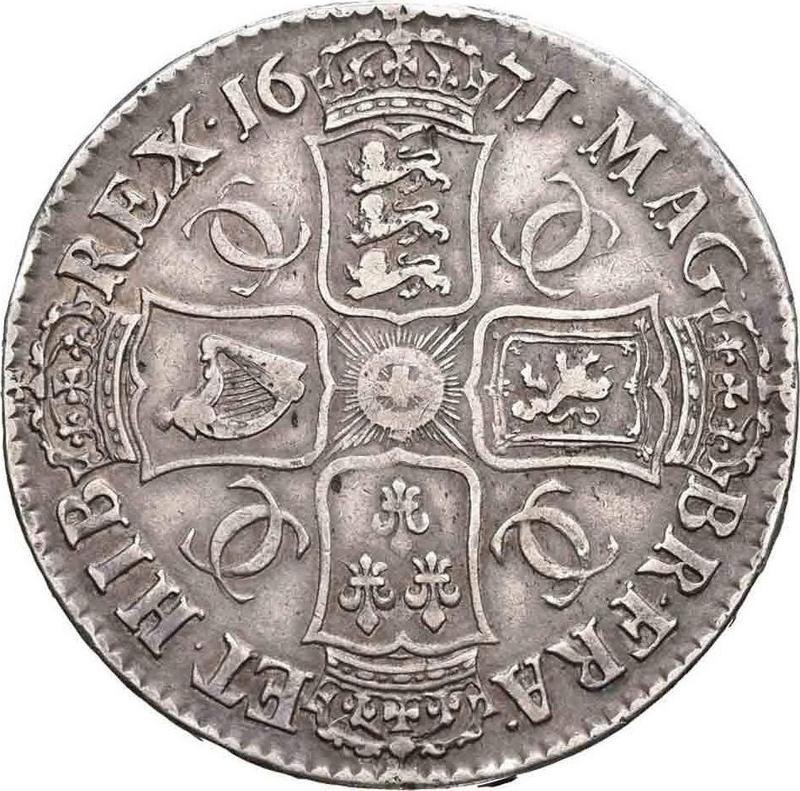 1 Corona 1671 "Tercera efigie laurada" (Gran Bretaña, Carlos II)