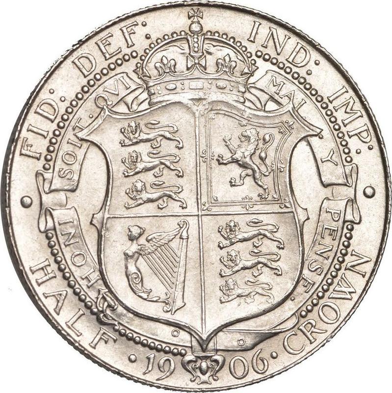 Descubra el valor actual de la moneda británica de Media corona de 1906 . Esta moneda de plata pertenece al tiempo de Eduardo VII. ¿Cuál es el precio de una moneda como esta? El precio récord pertenece al lote 4366 vendido en la subasta Ira & Larry Goldberg Coins & Collectibles, Inc. por USD 2115. La subasta tuvo lugar el 25 de enero de 2015.