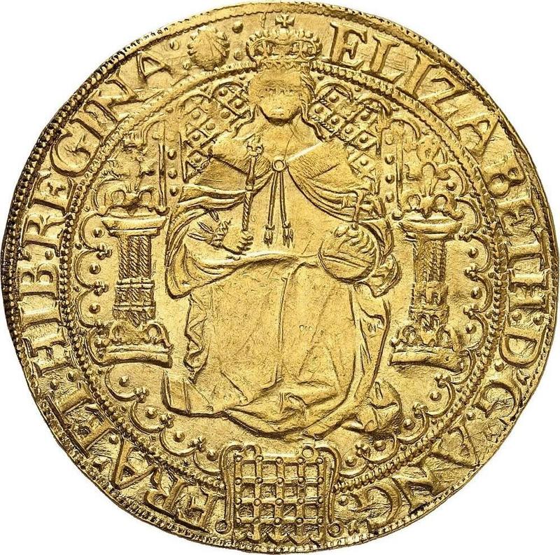 Descubra el valor actual de la moneda británica de Soberano de Sin fecha (1559-1600) . Cadenas en la rejilla de caída. Esta moneda de oro pertenece al tiempo Isabel I. ¿Cuál es el precio de una moneda como esta? El precio récord pertenece al lote 6 vendido en la subasta Dix Noonan Webb por GBP 140000. La subasta tuvo lugar el 17 de noviembre de 2021.
