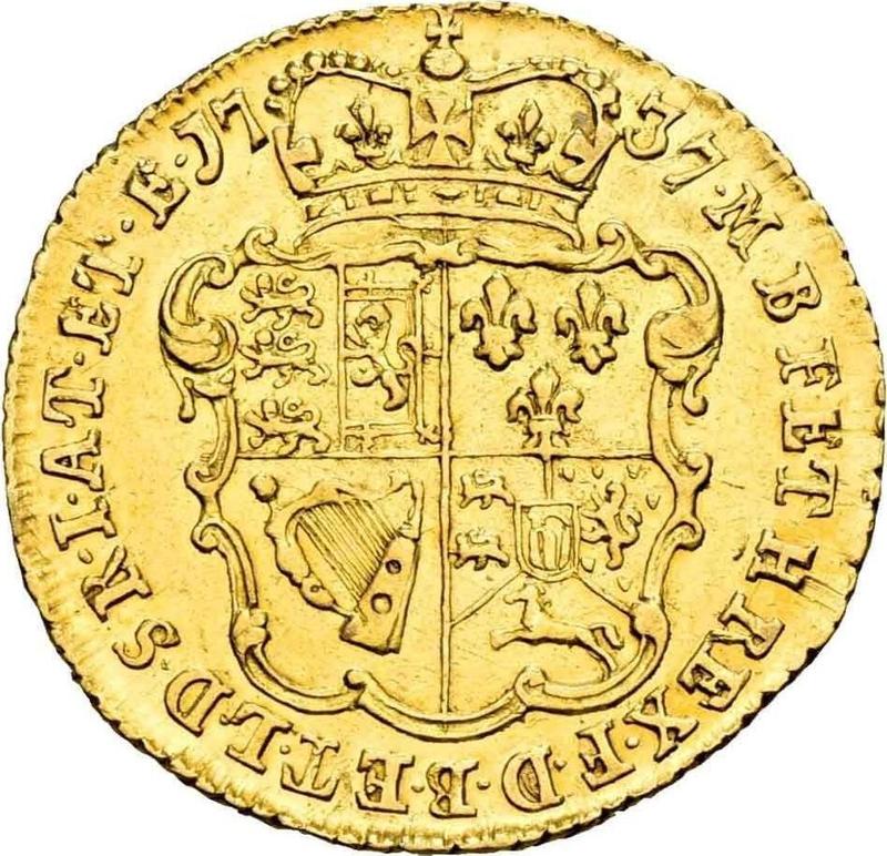 Descubra el valor actual de la moneda británica de 1/2 guinea de 1737 "Retrato en años jóvenes". Esta moneda de oro pertenece al tiempo de Jorge II. ¿Cuál es el precio de una moneda como esta? El precio récord pertenece al lote 39 vendido en la subasta Spink por GBP 4800. La subasta tuvo lugar el 15 de septiembre de 2020.