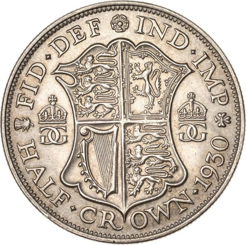 Descubra el valor actual de la moneda británica de Media corona de 1930 . Esta moneda de plata pertenece al tiempo de Jorge V. ¿Cuál es el precio de una moneda como esta? El precio récord pertenece al lote 11888 vendido en la subasta Heritage Auctions por USD 2933. La subasta tuvo lugar el 18 de septiembre de 2003.