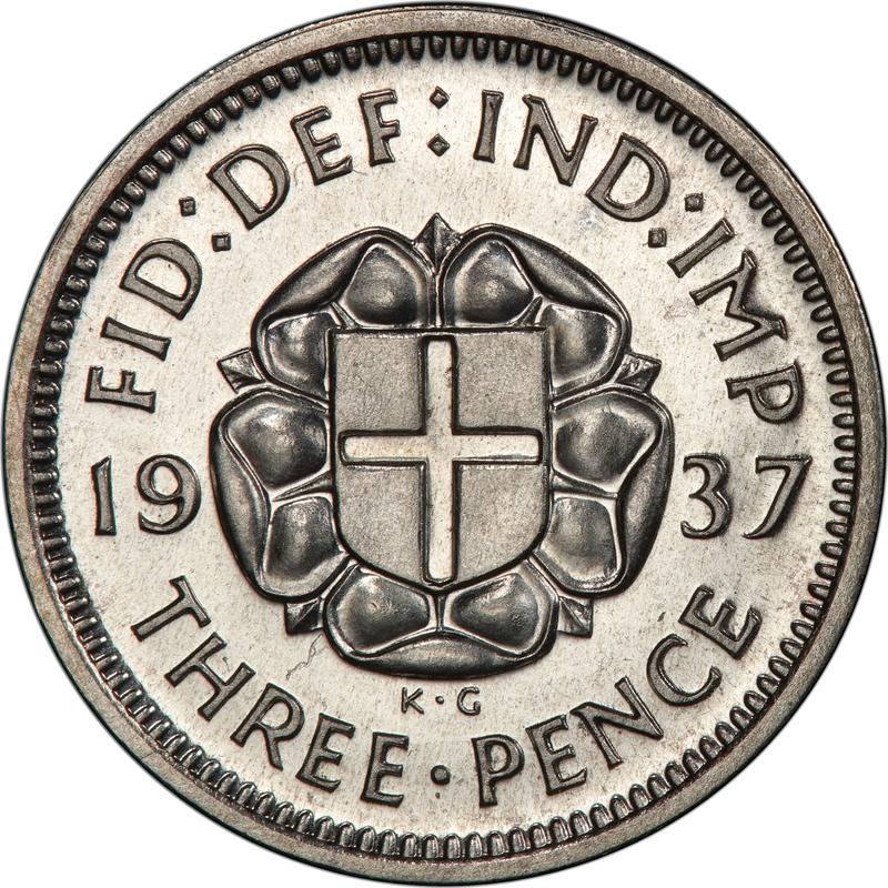 3 peniques 1937 HP "Tipo 1937-1945" (Gran Bretaña, Jorge VI)