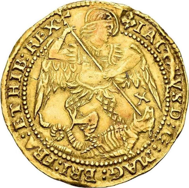 Descubra el valor actual de la moneda británica de Angel de Sin fecha (1619-1625) "Tercera emisión". Esta moneda de oro pertenece al tiempo de Jacobo I. ¿Cuál es el precio de una moneda como esta? El precio récord pertenece al lote 592 vendido en la subasta SINCONA AG por CHF 17000. La subasta tuvo lugar el 21 de noviembre de 2021.