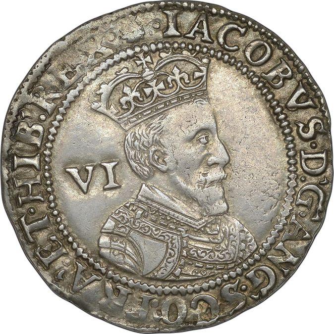 6 peniques 1603 "Primer busto" (Gran Bretaña, Jacobo I)