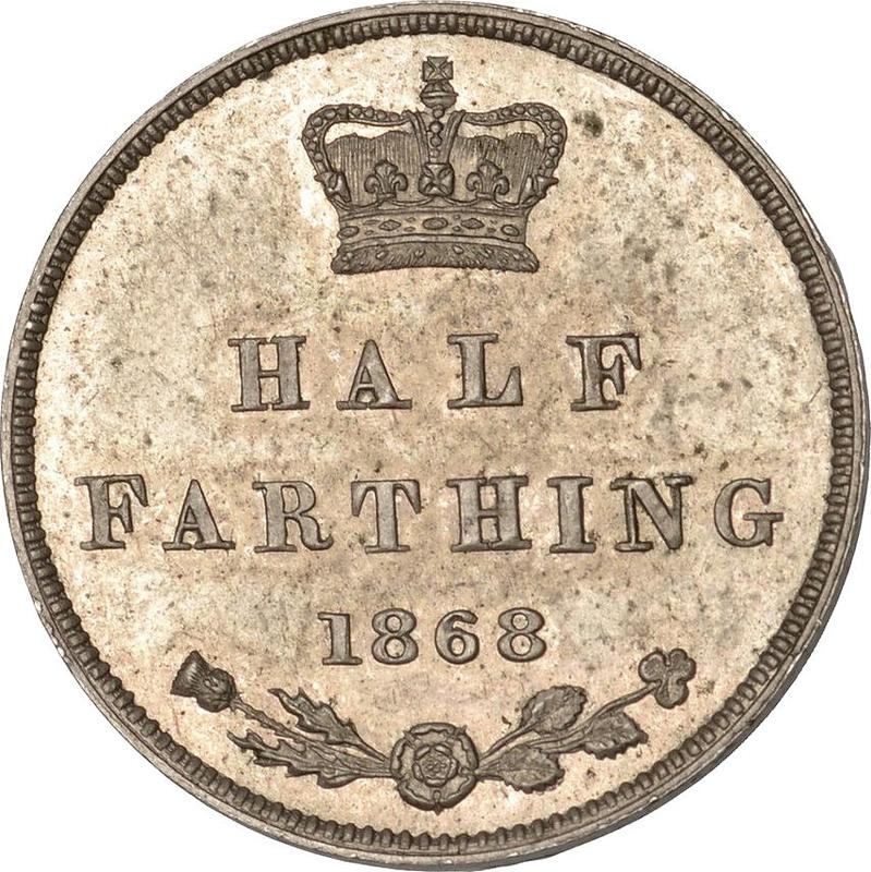 Según los últimos datos, a fecha de 5 de diciembre de 2025, el valor medio de la moneda de Medio farthing del 1868 es de 890 USD para las monedas PROOF. La moneda no está hecha de un metal precioso, por lo que si su estado de conservación es deficiente, su valor y liquidez pueden ser muy bajos.