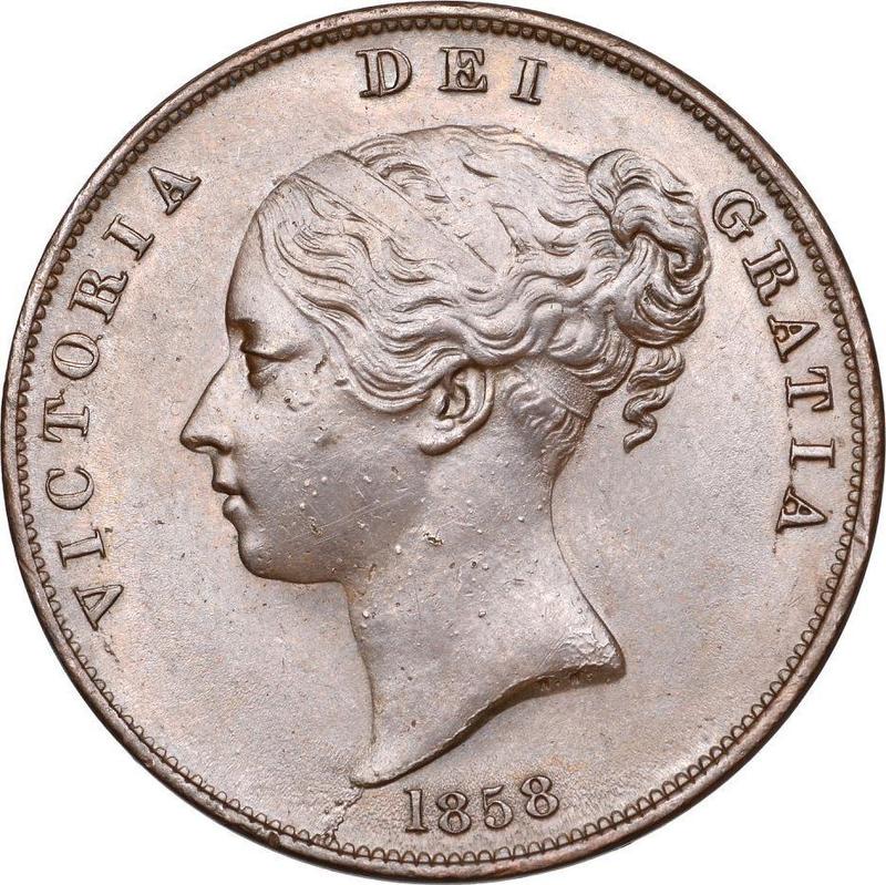 Descubra el valor actual de la moneda británica de Penique de 1858 con marca de ceca WW. Esta moneda de cobre pertenece al tiempo de Victoria. ¿Cuál es el precio de una moneda como esta? El precio récord pertenece al lote 2055 vendido en la subasta Baldwin's of St. James's por GBP 1850. La subasta tuvo lugar el 9 de diciembre de 2020.