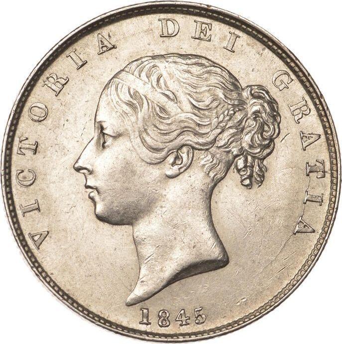 Descubra el valor actual de la moneda británica de Media corona de 1845 . Esta moneda de plata pertenece al tiempo de Victoria. ¿Cuál es el precio de una moneda como esta? El precio récord pertenece al lote 32821 vendido en la subasta Heritage Auctions por USD 3840. La subasta tuvo lugar el 21 de enero de 2021.