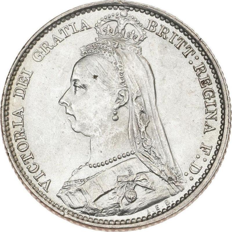 Descubra el valor actual de la moneda británica de 6 peniques de 1889 "Retrato jubilar" con marca de ceca JEB. Esta moneda de plata pertenece al tiempo de Victoria. ¿Cuál es el precio de una moneda como esta? El precio récord pertenece al lote 27328 vendido en la subasta Heritage Auctions por USD 633. La subasta tuvo lugar el 25 de abril de 2012.