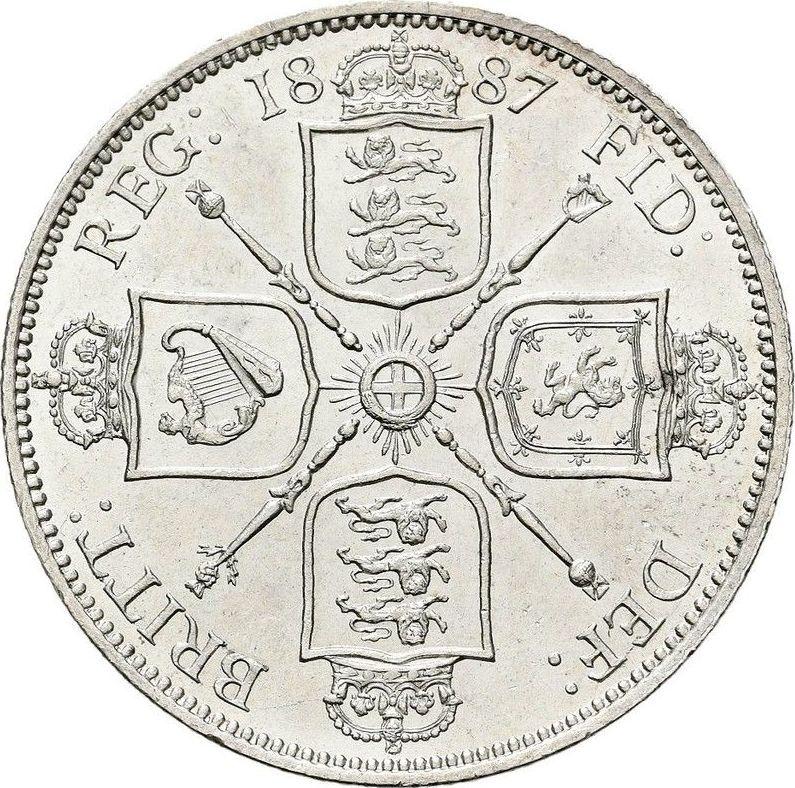 Descubra el valor actual de la moneda británica de Florín (2 chelines) de 1887 "Retrato jubilar" con marca de ceca JEB. Esta moneda de plata pertenece al tiempo de Victoria. ¿Cuál es el precio de una moneda como esta? El precio récord pertenece al lote 21922 vendido en la subasta Heritage Auctions por USD 10350. La subasta tuvo lugar el 3 de enero de 2010.