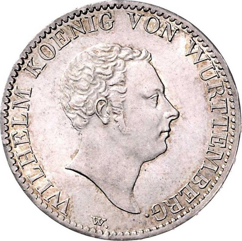 Descubra el valor actual de la moneda Wurtemberg de 1 florín de 1825 con marca de ceca W. Esta moneda de plata pertenece al tiempo de Guillermo I y fue acuñada en la ceca de Stuttgart. ¿Cuál es el precio de una moneda como esta? El precio récord pertenece al lote 1402 vendido en la subasta Fritz Rudolf Künker GmbH & Co. KG por EUR 2600. La subasta tuvo lugar el 27 de junio de 2017.