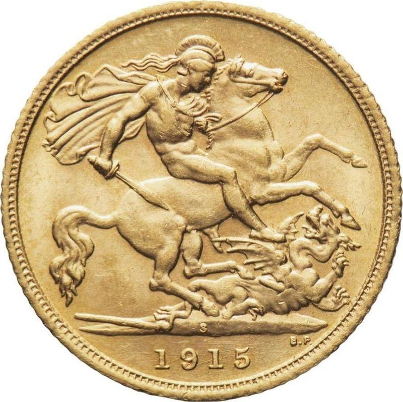 Ile kosztuje złota moneta 1/2 suwerena 1915 S z okresu Jerzego V?