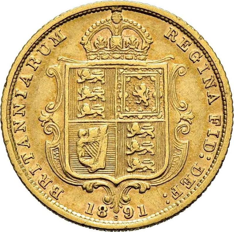 Ile kosztuje złota moneta 1/2 suwerena 1891 S JEB "Portret jubileuszowy" z okresu Wiktorii?