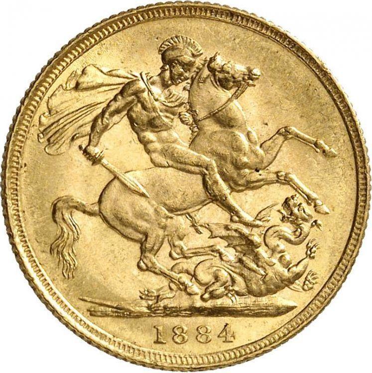 Ile kosztuje złota moneta 1 suweren 1884 S WW "Św. Jerzy" z okresu Wiktorii?
