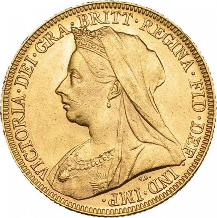 Ile kosztuje złota moneta 1 suweren 1896 M "Zasłonięta głowa" z okresu Wiktorii?