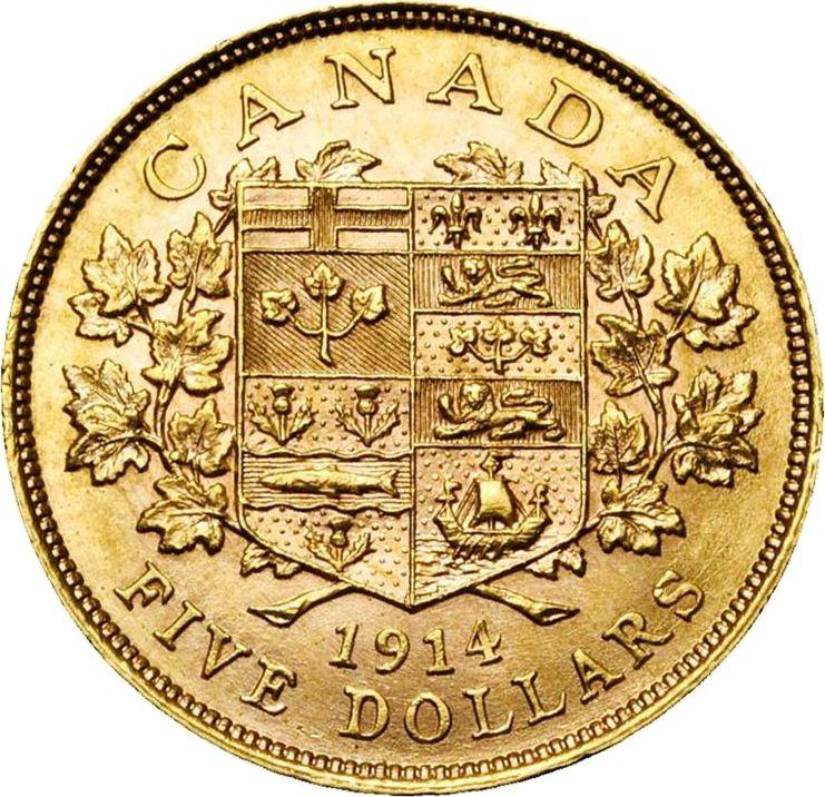 Sprawdź wartość monety Kanadyjskiej 5 dolarów 1914 . Jest to złota moneta z okresu Jerzego V. Chcesz wiedzieć, ile jest warta moneta? Rekordowa cena należy do pozycji 23261 z aukcji Heritage Auctions której łączna cena osiągnęła 10 575 USD. Licytacja odbyła się 5 stycznia 2014.