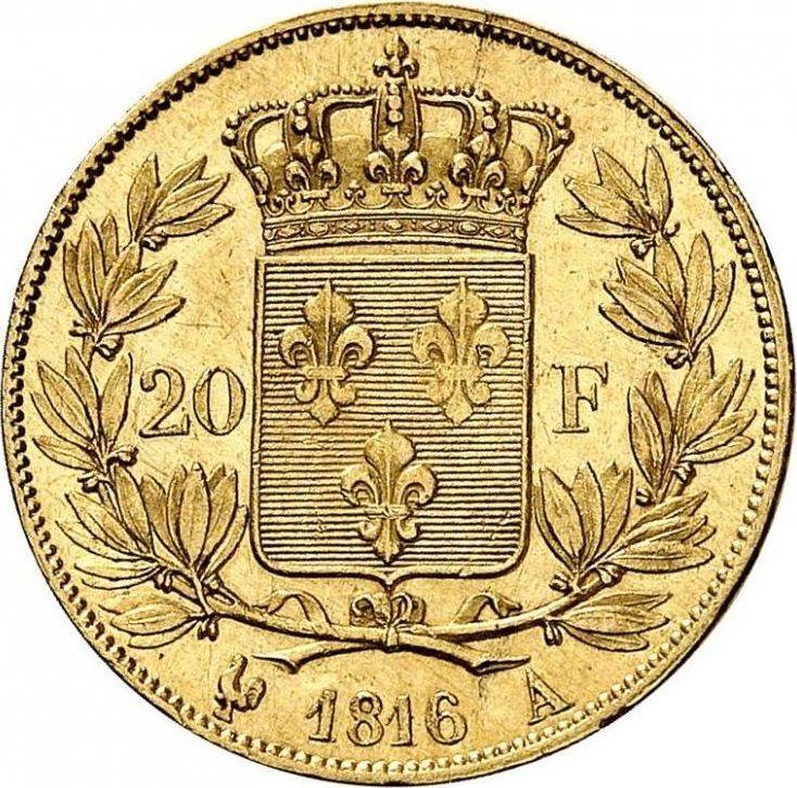Sprawdź wartość monety francuskiej 20 franków 1816 ze znakiem A. Jest to złota moneta z okresu Ludwika XVIII. Chcesz wiedzieć, ile jest warta moneta? Rekordowa cena należy do pozycji 2103 z aukcji Bonhams Knightsbridge której łączna cena osiągnęła 32 760 USD. Licytacja odbyła się 8 grudnia 2010.