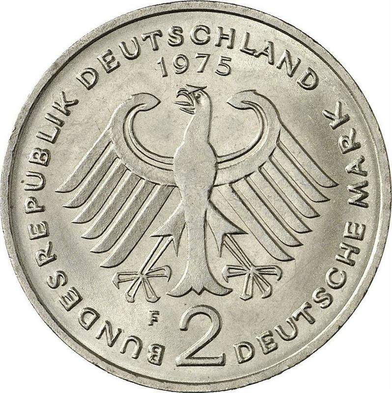 2 marki 1975 F "Konrad Adenauer" (Niemcy, RFN)