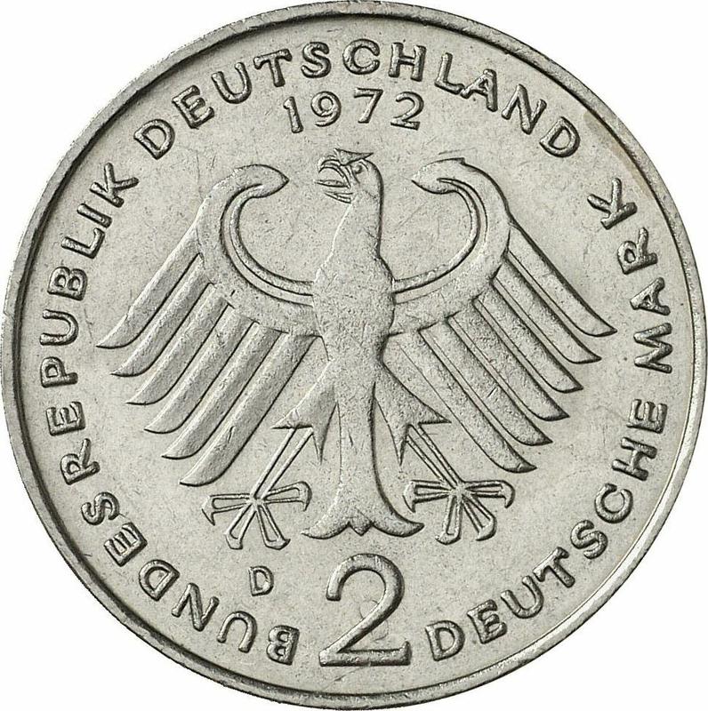 2 marki 1972 D "Theodor Heuss" (Niemcy, RFN)