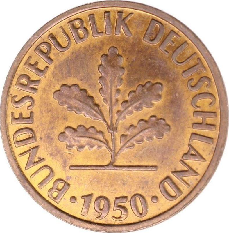 Według najnowszych danych na dzień 6 grudnia 2025, średnia cena monety 2 fenigi 1950 RFN ze znakiem J wynosi 850 USD dla emisji obiegowej oraz 760 USD dla monet wybitych sztemplem lustrzanym. Moneta została wykonana z nieszlachetnego metalu, dlatego w słabym stanie zachowania może mieć bardzo niską wartość i płynność.