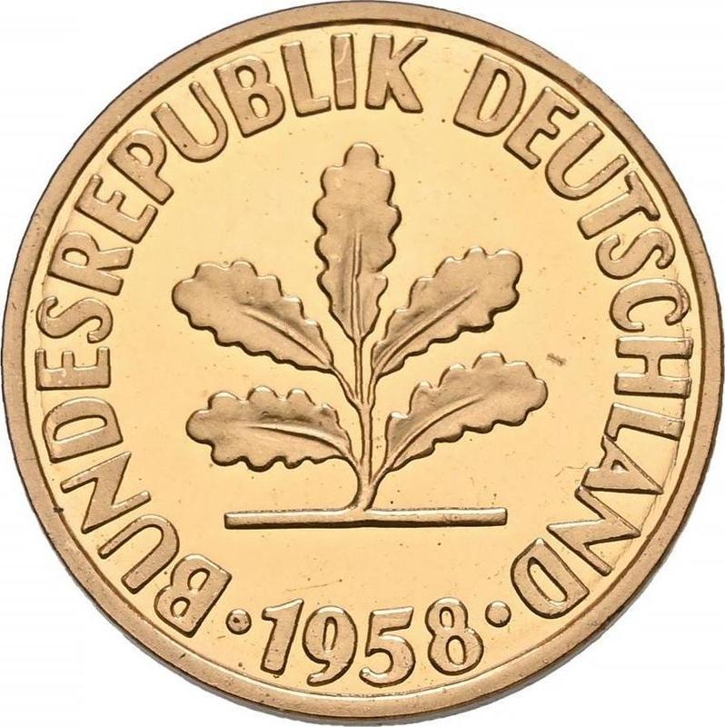 Według najnowszych danych na dzień 6 grudnia 2025, średnia cena monety 2 fenigi 1958 RFN ze znakiem J wynosi 540 USD dla monet wybitych sztemplem lustrzanym. Moneta została wykonana z nieszlachetnego metalu, dlatego w słabym stanie zachowania może mieć bardzo niską wartość i płynność.