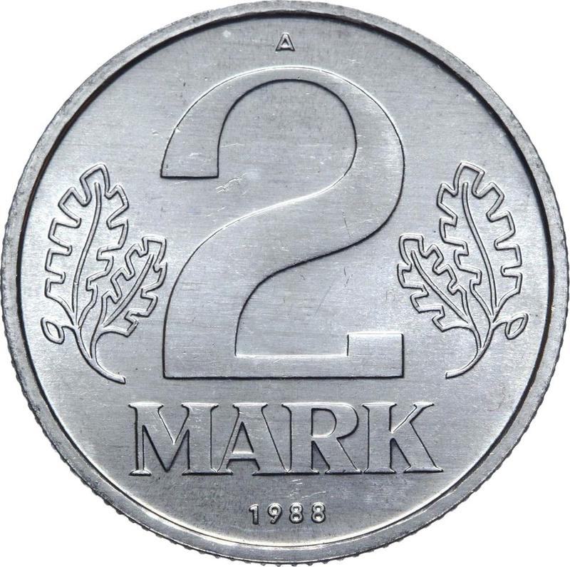 Według najnowszych danych na dzień 5 grudnia 2025, średnia cena monety 2 marki 1988 NRD ze znakiem A wynosi 20 USD. Moneta została wykonana z nieszlachetnego metalu, dlatego w słabym stanie zachowania może mieć bardzo niską wartość i płynność.