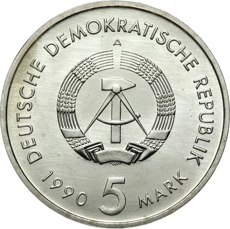 Według najnowszych danych na dzień 5 grudnia 2025, średnia cena monety 5 marek 1990 NRD ze znakiem A "Poczta" wynosi 30 USD dla emisji obiegowej oraz 65 USD dla monet wybitych sztemplem lustrzanym. Moneta została wykonana z nieszlachetnego metalu, dlatego w słabym stanie zachowania może mieć bardzo niską wartość i płynność.
