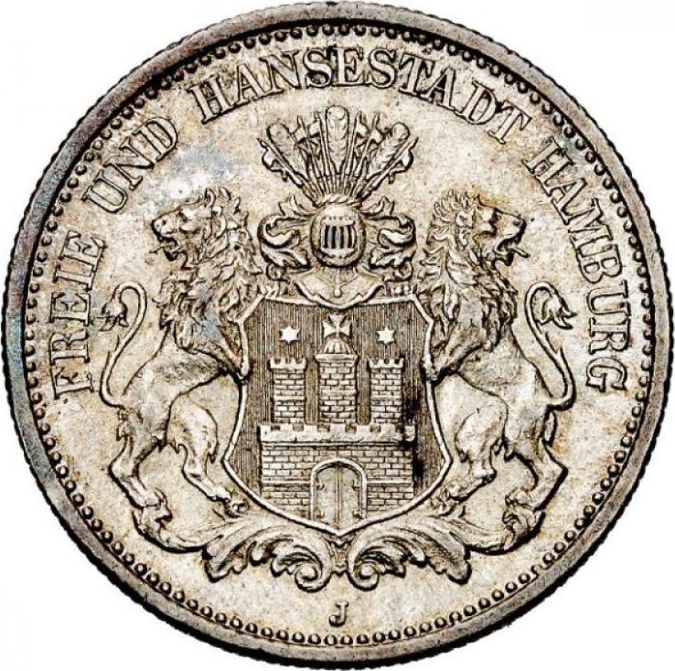 Według najnowszych danych na dzień 5 grudnia 2025, średnia cena srebrnej monety 2 marki 1877 Cesarstwa Niemieckiego ze znakiem J "Hamburg" wynosi 500 USD dla emisji obiegowej oraz 3500 USD dla monet wybitych sztemplem lustrzanym.