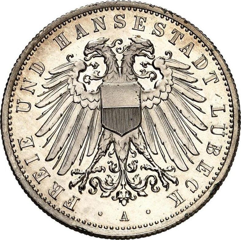 Według najnowszych danych na dzień 6 grudnia 2025, średnia cena srebrnej monety 2 marki 1912 Cesarstwa Niemieckiego ze znakiem A "Lubeka" wynosi 150 USD dla emisji obiegowej oraz 680 USD dla monet wybitych sztemplem lustrzanym.