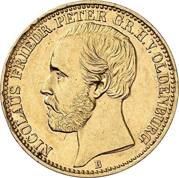 Sprawdź wartość monety niemieckiej 10 marek 1874 "Oldenburg" ze znakiem B. Jest to złota moneta z okresu Cesarstwa Niemieckiego wybita w mennicy Hanower. Chcesz wiedzieć, ile jest warta moneta? Rekordowa cena należy do pozycji 3057 z aukcji Fritz Rudolf Künker GmbH & Co. KG której łączna cena osiągnęła 20 000 EUR. Licytacja odbyła się 29 września 2022.