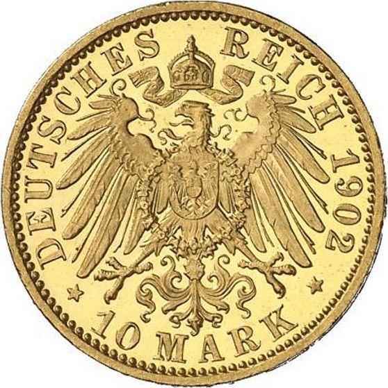 Według najnowszych danych na dzień 6 grudnia 2025, średnia cena złotej monety 10 marek 1902 Cesarstwa Niemieckiego ze znakiem A "Prusy" wynosi 330 USD dla emisji obiegowej oraz 2700 USD dla monet wybitych sztemplem lustrzanym. Moneta zawiera 3,5838 g czystego złota, dlatego nie zalecamy jej sprzedaży poniżej 483,56 USD, nawet jeśli znajduje się w słabym stanie zachowania i nie przedstawia wartości kolekcjonerskiej.